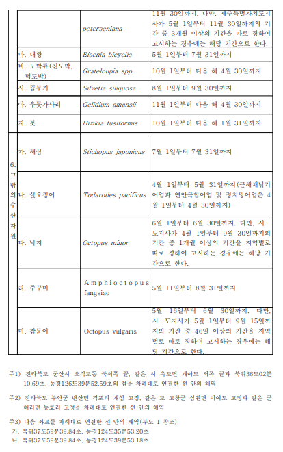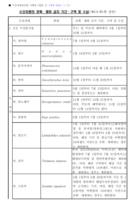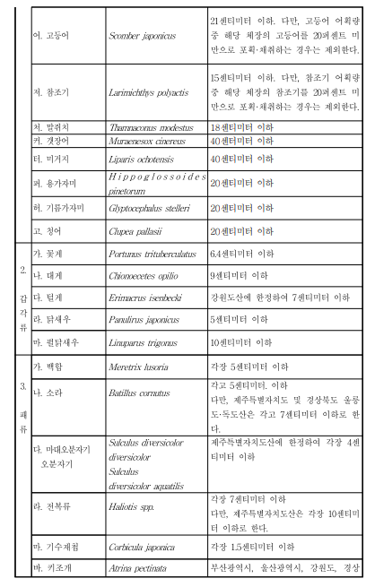 대부분의 어종은 동일하게 적용받고 있으나,