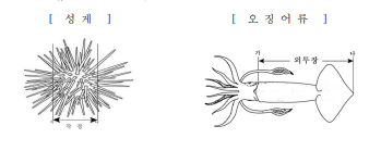 그리고 오징어류는 외투장의 길이를 기준으로 합니다.