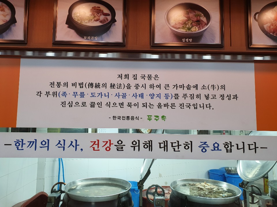 만약 프림이나 우유, 수입 사골 분말, 땅콩가루 등 어떠한 첨가물을 넣어 농탁하게 한 것이면 10억 원을 배상하겠다고 쓰여져 있습니다 푸주옥만의 자부심이 느껴지는 부분이었습니다