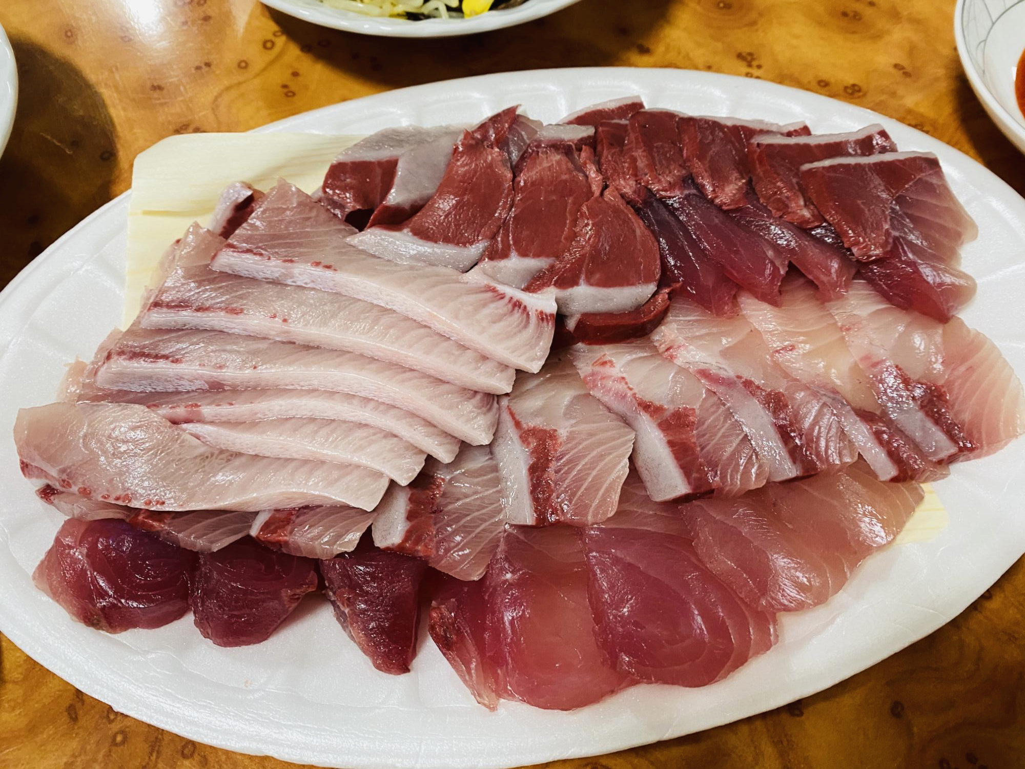 앞 수족관에 방어들이 있었으며 안에는 더 큰 방어들이 있었습니다