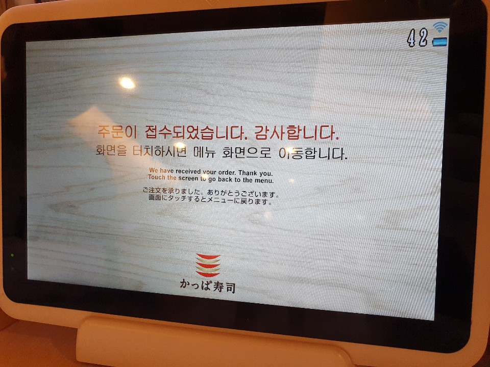 이렇세 테이블마다 패드가 있으며 먹고 싶은 초밥이 안 나오면 여기서 따로 주문을 할 수 있습니다