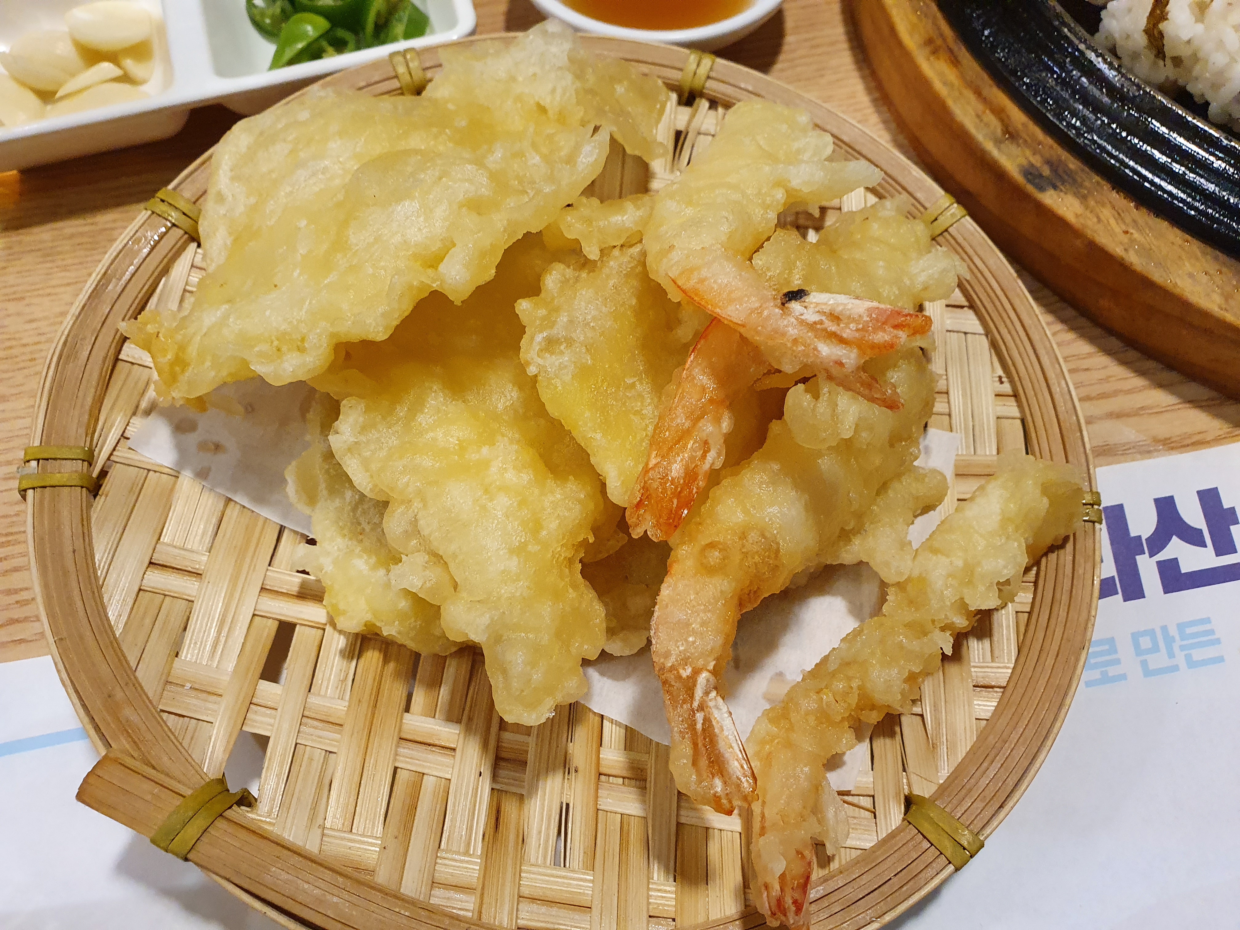 고구마튀김이 몇 개는 너무 얇았고 또 몇 개는 너무 두꺼워서 튀김마다 일정치가 않았습니다